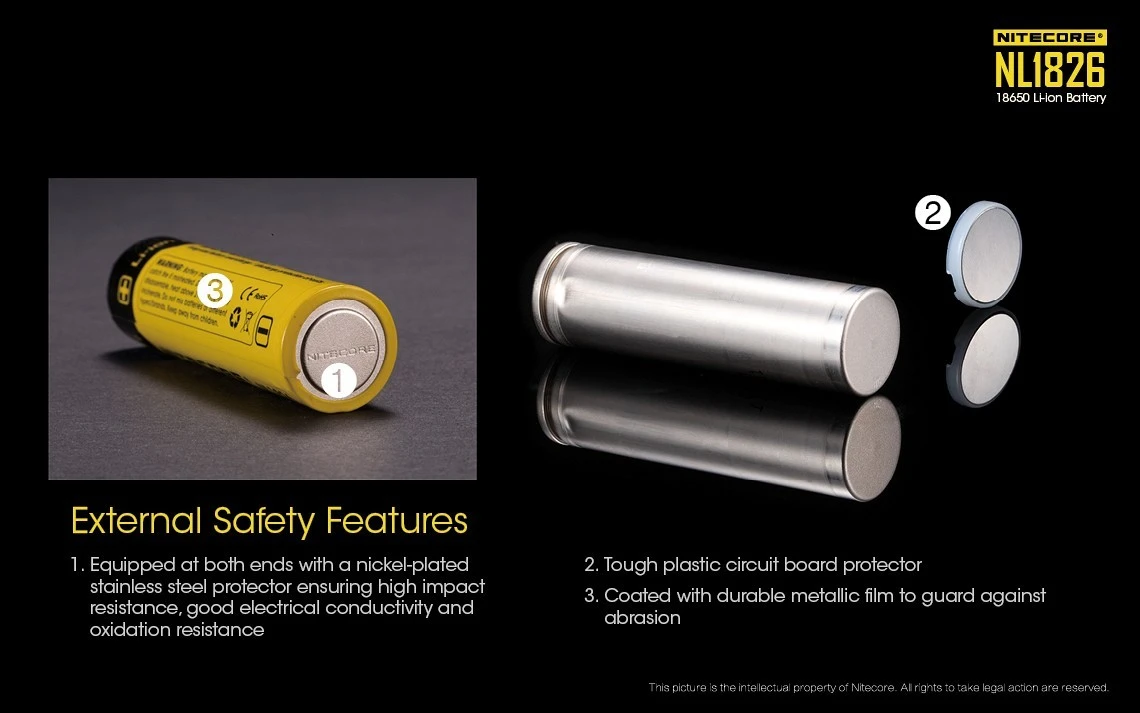 The cells feature an over-discharge protection circuit and are custom-designed to withstand the high current demands of LED torches and other products. For safety and performance TorchMonster highly recommends the use of NITECORE cells as opposed to cheaper unbranded alternatives. These batteries are twice the length of the CR123. You can use a single 18650 instead of two CR123s. Advantage: They are rechargeable Disadvantage: They cost more initially, but pay for themselves as soon as you re-use them