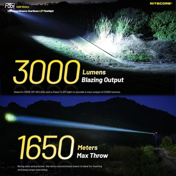 - •POWERFUL LEP FLASHLIGHT – Nitecore P35i has a 3000 lumen max powered by a state-of-the-art LEP module and six surrounding LEDs that reaches over a mile in distance and cover the nearfield.