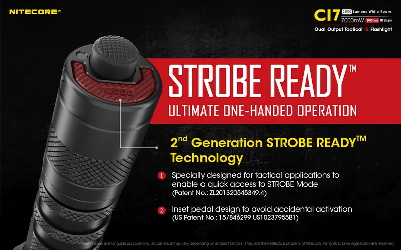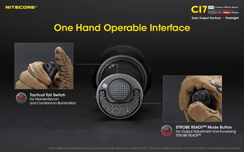 Big brother of the CI6, is the crazy grunty Nitecore CI7. Its a bit pricier, but theres good reasons. Its packing 4 x Cree XP-G3 S3 LEDs for white light. Its also got 4 x SST-10-IR LEDs that pump out 7000mW of InfraRed.