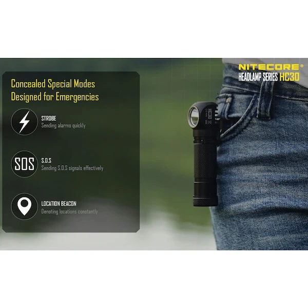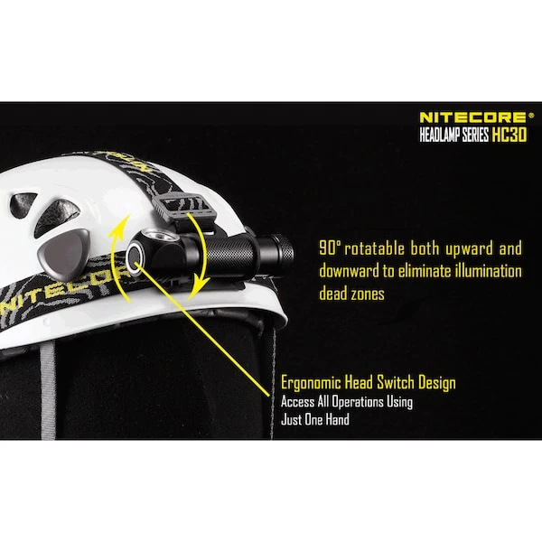 Equipped with a CREE XM-L2 U2 LED and rated at 1000 lumens, the NITECORE HC30 is a bright yet lightweight headlamp. It can reaches as far as 177 yards in distance while still offering 100 degrees of beam illumination to enable full visibility of surroundings. It is ruggedly built and adjustable with five brightness outputs and three special modes. The body can be swiveled 90 degree upwards or downwards or detach it from the nylon headband to hand carry. It is perfect for hiking, climbing, camping, and general outdoor recreation. Included with the HC30 is an adjustable headband and mounting bracket, pocket clip, spare switch cover and spare O-ring.