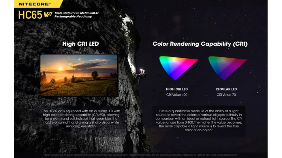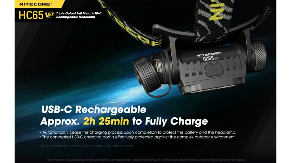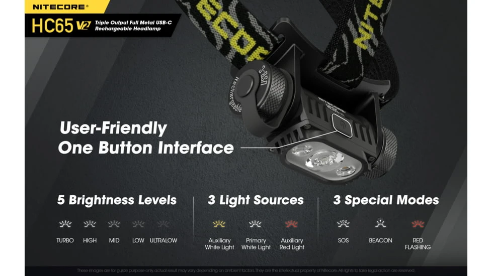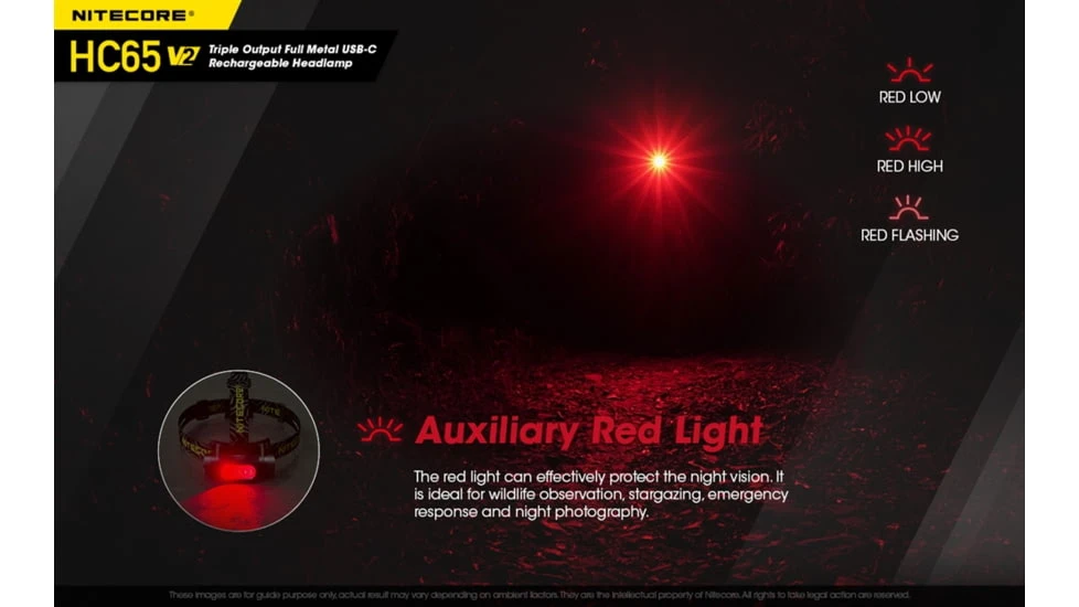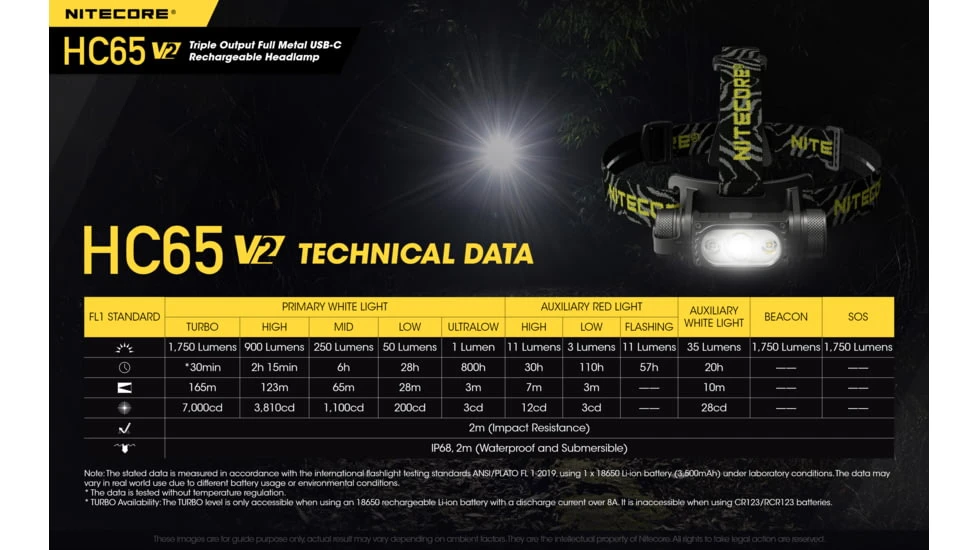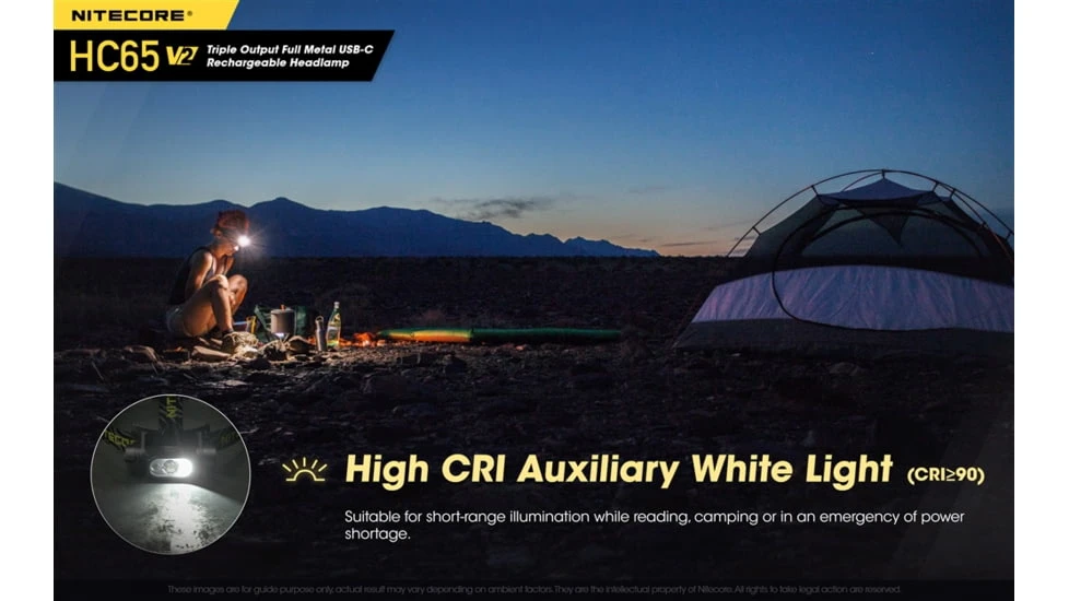 The Nitecore HC65 v2 headlamp takes everything we love about the Nitecore HC65 and makes it brighter, easier to use and faster to charge. It increases the max output to 1750 lumen, reaching up to 180 yards. Its 100 degree wide angle flood beam covers your entire field of vision. The HC65 v2 retains the auxiliary red light for hunting, insect repelling, or low light tactics – as well as the high cri secondary LED for low light reading, and color rendering. This makes the HC65 v2 an ideal headlamp for camping, running, trekking, biking, or any outdoor activities. The HC65 v2 headlamp comes with an 3500mAh high capacity 18650 battery that supports an exceptional 800 hours of runtime on ultra low. You can fast charge the headlamp via its USB-C charging port. It is comfortable to wear with a secure rear pad and silicone grip strip on the headband. With the quality you can trust from Nitecore brand, the HC65 v2 headlamp is an indispensable tool you can count on no matter if you are at work or have fun outside.![]()