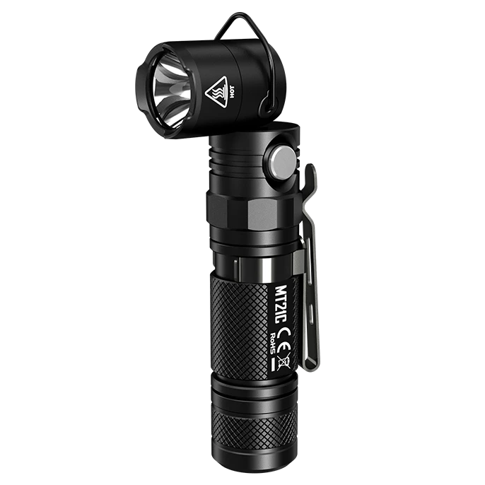 Heres an exciting evolution at Nitecore to give you a forward facing beam. The torch head can rotate from the standard position through four clicks till its facing 90 degrees. So you get the power of 1000 lumens pointing forward from you jacket.