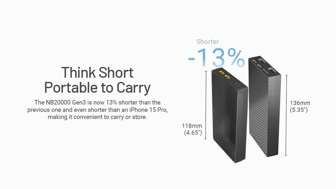 The Nitecore NB20000 power bank has an extraordinary 20,000mAh battery that can charge an iPhone 12 six times over. Embodying all this power in a solid carbon fibre frame and case, the NB20K is 27% lighter than conventional power banks and compact enough to slip right into your pocket, with a sleek modern minimalist design. The NB20k is the ultimate portable backup battery charger for road warriors, outdoor enthusiasts who enjoy hiking or camping, or first responders who are on a long search and rescue mission. It is also a great addition to your emergency prep kit or bug-out bag.