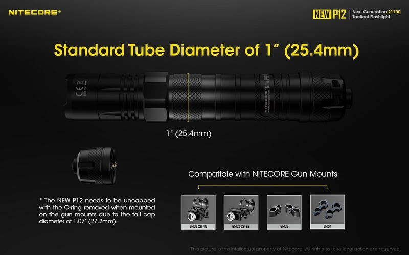 The NEW P12 at 154mm in length, it remains a solid choice as a duty light or EDC flashlight with the included pocket clip, lanyard, and a durable hard holster. Constructed from tough HA III aluminium, designed with a sturdy impact bezel, and rated IPX8 waterproof, this tactical light can handle the toughest environments. Whether facing the hazardous outdoors or the routine day-to-day, you can rest assured that the NEW P12 is a trustworthy companion in any situation.