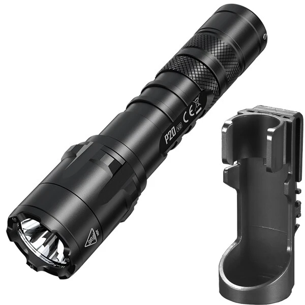 The NITECORE P20 v2 is the classic tactical flashlight you have been waiting for. This 1100 lumen flashlight reaches up to 242 yards of throw distance with a Cree XP-L2 V6 LED. Designed for military, tactical, and hunting uses, the P20 v2 has a dual-switch tailcap for one-handed operation with direct access to turbo and strobe. The light can further be easily customized with three operating modes including the tactical mode, law enforcement mode and daily mode for different usage scenarios.The P20 v2 operates on a single 18650 battery or 2x CR123A batteries, incredibly versatile and widely compatible. The bezel features three silicon nitride ceramic inlays for enhanced glass breaking. This flashlight is constructed using aero-grade aluminum with diamond knurling in key locations for enhanced grip. Additionally the P20 v2 maintains an even 1” diameter grip for easy handling, and is lightweight enough for daily carry with the included NTH20 hard holster. Complete with an all-weather applicable IP68 rated waterproof frame, the new P20 v2 just might outlast all of us.