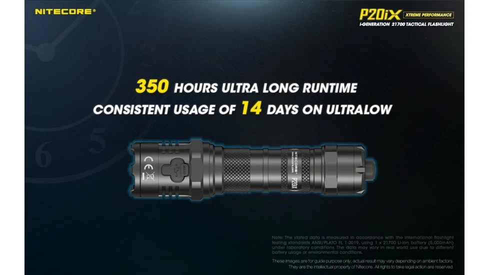 The NITECORE P20iX is unrivaled when it comes to performance. Nitecore took the beloved P20i frame and maintained the compact size, ergonomics, and doubled the power with four LEDs. This Xtreme tactical flashlight outputs a 4000 lumen flood light that can reach up to 241 yards. Designed for law enforcement and military users, enjoy instant turbo, instant strobe, six brightness modes and two programmable user modes. Nothing can hold the P20iX back when it can shatter through with its steel bezel with silicone nitrided glass breaking inlays. There is no substitute for the tactical flashlight than the Nitecore P20iX. The P20iX is part of Nitecore’s iSeries using intelligent 21700 batteries. This enables a potently efficient output, granting 30 minutes of 4000 lumen burst and a max runtime of 350 hours on low. Fast recharge the P20iX via its built-in USB-C port. It can also be powered by 2x CR123A batteries as a backup. With an IP68 waterproof rating and a covered charging port, the P20iX can be used safely in any climate. Included is a NTH20 tactical holster that is compatible with duty belts and MOLLE systems. The P20iX is an ideal choice for security, police, or military personnel.![]()