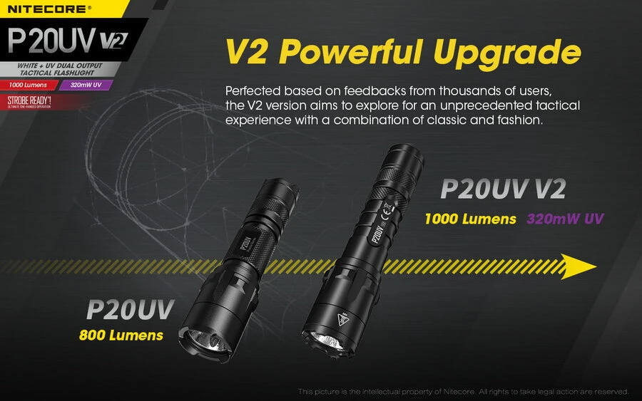 Another strong upgrade from Nitecore. Taking the P20UV into this version 2, we see a kick up from 800 to now 1000 lumens.