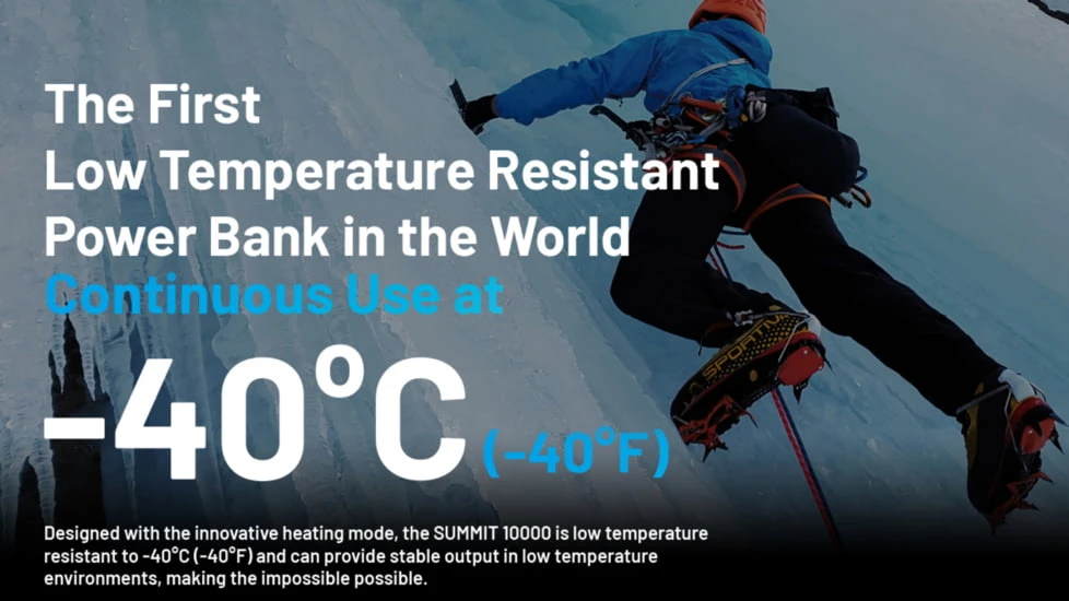 The Summit 10000 power bank combines the lightweight and steady carbon fiber frame with an innovative low temperature resistance at -40 C/F. Normal power banks drop efficiency significantly in cold climates. Summit 10000 can still charge a modern smartphone two times over on top of Mount Everest. The Summit 10000 comes with dual ports, a QC PD USB-C port that can fast charge the power bank or quick charge other devices at 18W and 20W respectively, as well as a USB-A QC output port to charge others. The Nitecore Summit 10000 is built with a unibody carbon fiber shell making it steady and extremely lightweight at only 6.07 ounces. The seamless design is not only 1.5 meters impact resistant, but also IPx5-rated water resistant ready for outdoor use. Summit 10000s intelligent heating function automatically kicks in when the temperature is below the freezing point. The heating function consumes ultra low power while keeping the power bank at an appropriate temperature to avoid loss of power or efficiency in cold climates.![]()