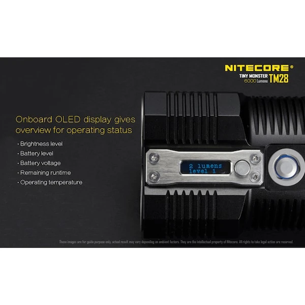 The NITECORE TM28 is here and ready to light up the sky. This upgrade to the TM26 is truly a Tiny Monster. It boasts a blinding 6000 lumens, capable of up to 716 yards throw, all condensed into a palm-sized package. The TM28 utilizes four CREE XHP35 HI LEDs to combine for 107,200 candelas, making it an ideal flashlight for search and rescue operations. Users can effortlessly select from 5 brightness settings, 3 special functions and 2 mode settings with the easy to operate single button user interface. Photographers and campers will enjoy the tripod mount which turns the TM28 into a stationary light with a few quick twists (tripod not included). Get real-time updates about battery status, brightness level and temperature from the on board OLED display, and when it’s time to recharge, simply plug in the included AC adapter and the intelligent charging circuit will choose the appropriate charging mode based on battery type.