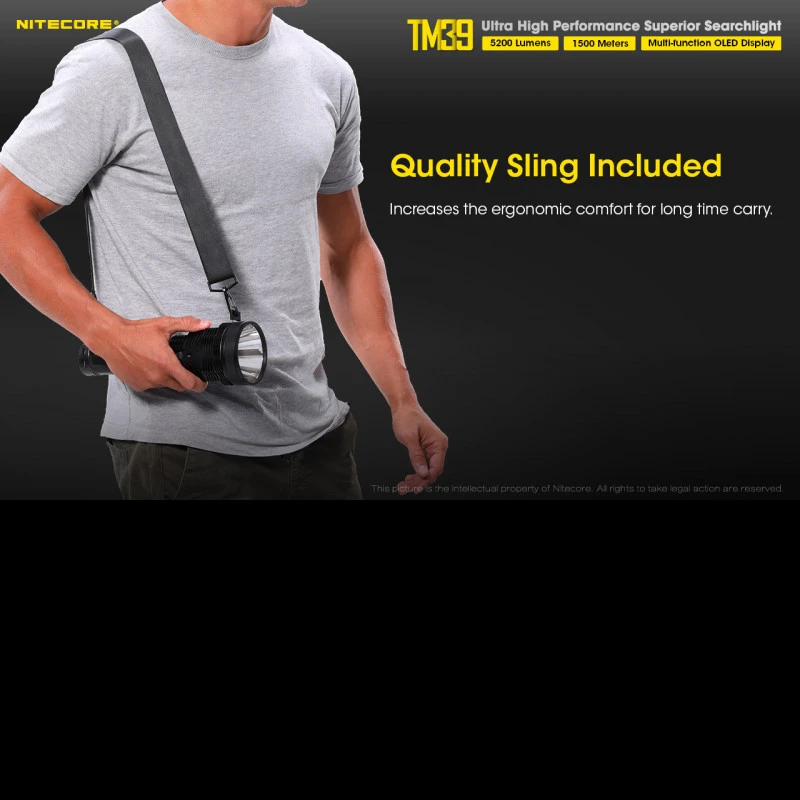 The Nitecore TM39 flashlight has an impressive maximum output of 5200 lumens from the Luminus SBT-90 Gen 2 LED and is powered by an included NBP68HD battery pack. Featuring an extremely long maximum range of 1500 meters, the TM39 is the ideal searchlight.