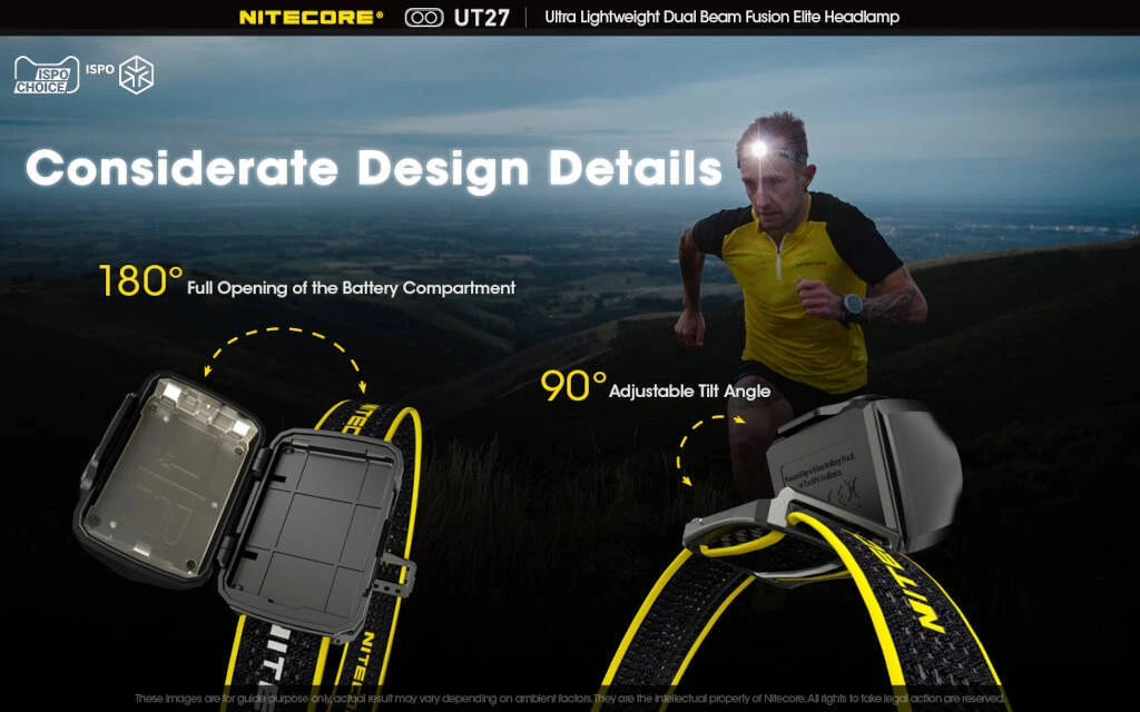 Built on a durable yet compact frame, the UT27 weighs only 74 grams including the battery and headband. The breathable lightweight headband has a built-in silicone strip that firmly secures the UT27 to your dome while helping divert sweat away from the eyes. Reflective decals provide additional visibility to motorists, making it safe for nighttime walking, jogging, or if you’re an over achiever, running.